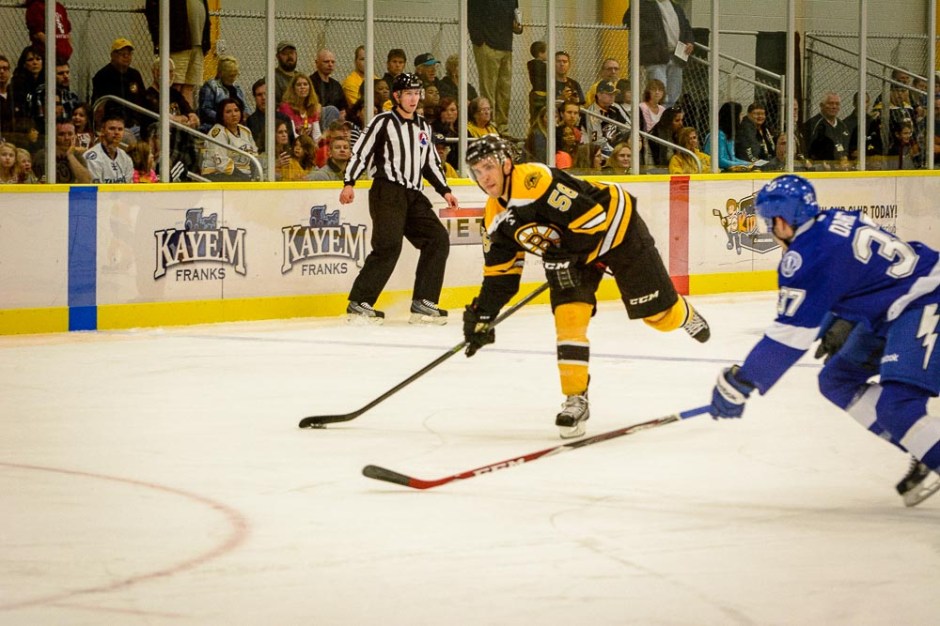 Bruins-Bolts Rookie Game-11 ← Previous Next → Boston’s Ben Sexton lines up a shot from the high slot. (Jim Diamond/Rinkside Report)