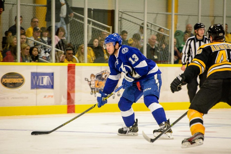 Bruins-Bolts Rookie Game-22 ← Previous Next → Tampa’s Artem Sergeev from inside the blue line. (Jim Diamond/Rinkside Report)