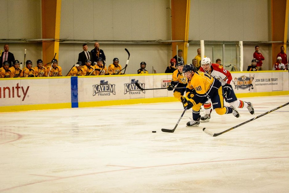 Preds-Panthers Rookie Game-9 ← Previous Next → Nashville’s Brendan Leipsic drives through the slot. (Jim Diamond/Rinkside Report)