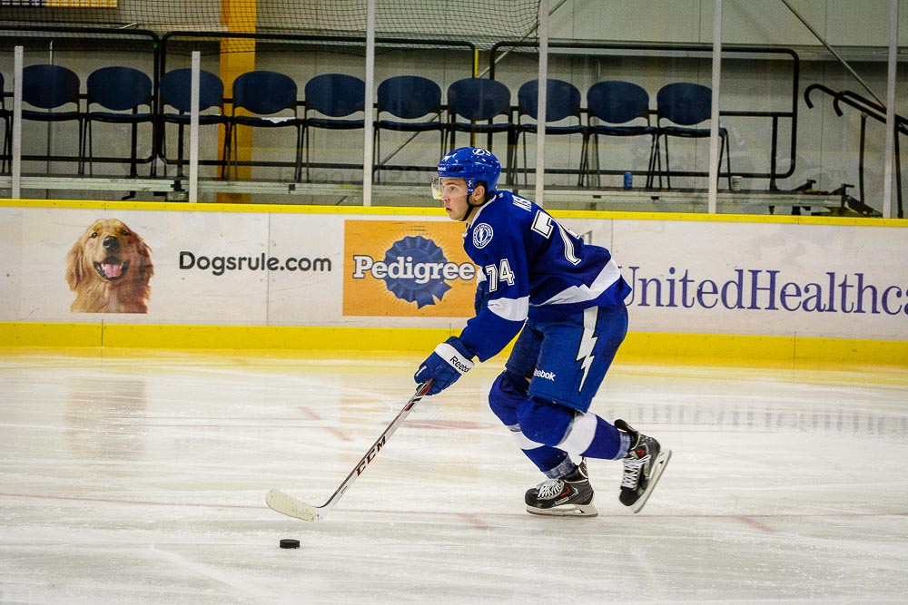 Predators-Bolts Rookie Game-15 ← Previous Next → Lightning defenseman Dominik Masin with some room to carry the puck.