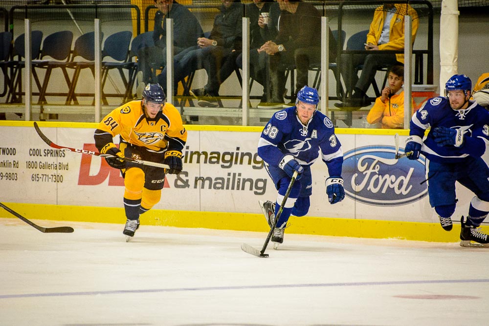 Predators-Bolts Rookie Game-6 ← Previous Next → Tampa Bay’s Tanner Richard carries the puck on the rush.