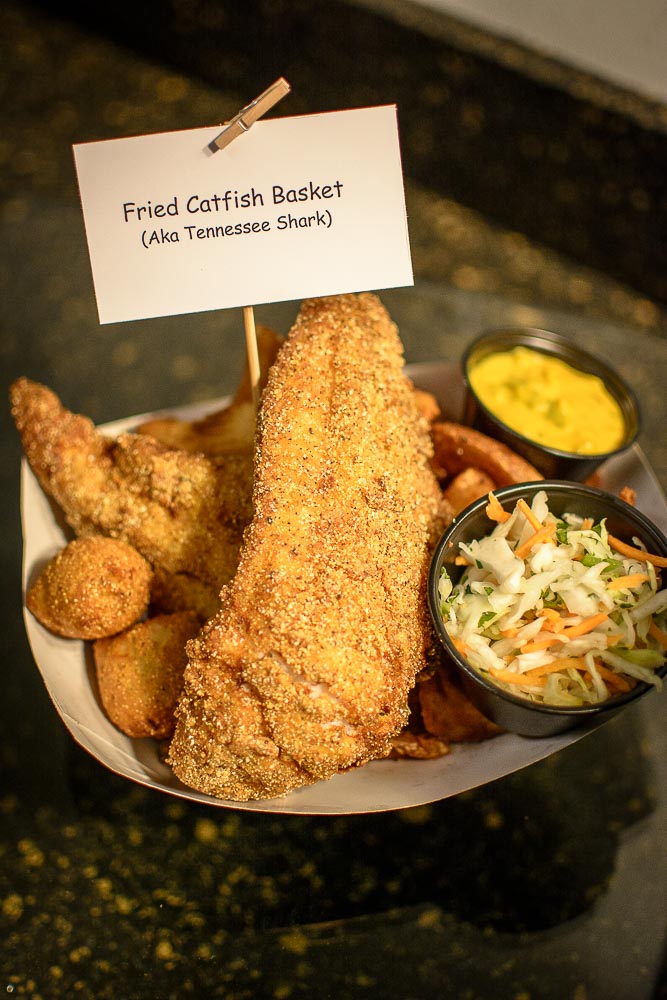 The chefs at Bridgestone thought that they should do something with all of those catfish that get lobbed onto the ice during the games, so they came up with the idea of creating a catfish basket.