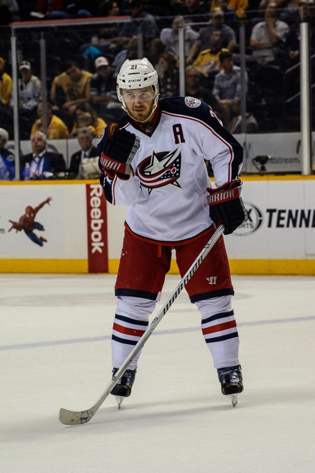 Preds-Jackets-16 ← Previous James Wisniewski motions to a teammate prior to an offensive zone faceoff. (Jim Diamond/Rinkside Report)