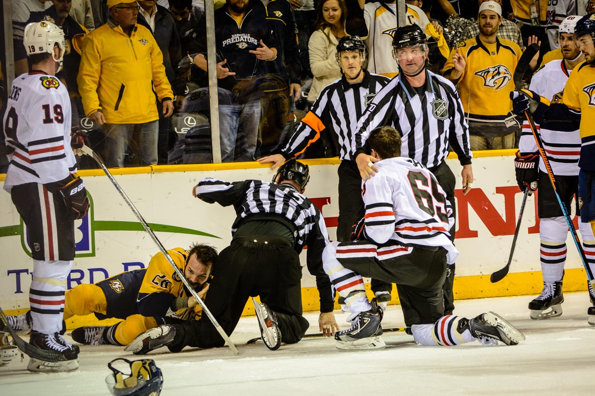 More known for his passing ability than his prowess for delivering open-ice hits, Ribeiro made a play that was uncommon for him in a night of firsts for the Predators. After missing considerable time down the stretch of the season with a broken collarbone, Kane had largely gone untouched for most of the series. The score was tied 1-1 at the time, and the middle frame would end that way, but in the third, the Predators came out flying.