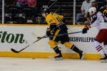 - Roman Josi skates back hard to retrieve a puck on a Nashville power play. (Jim Diamond/Rinkside Report)
