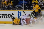 - Mattias Ekholm takes down Michael Chaput. (Jim Diamond/Rinkside Report)
